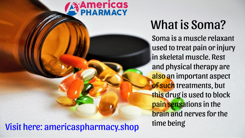 Soma is a muscle relaxant used to treat pain or injury in skeletal muscle. Rest and physical therapy are also an important aspect of such treatments, but this drug is used to block pain sensations in the brain and nerves for the time being. Make sure to read all about it before you buy soma online and use it. Buy Soma Online