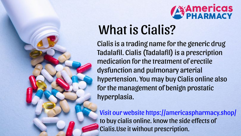 Cialis is a trading name for the generic drug Tadalafil. Cialis (Tadalafil) is a prescription medication for the treatment of erectile dysfunction and pulmonary arterial hypertension. You may buy Cialis online also for the management of benign prostatic hyperplasia. This medication is similar to Viagra and Levitra. It increases blood flow to the penis, enabling an erection to occur when a man is sexually stimulated. Order Cialis Online With Overnight Delivery